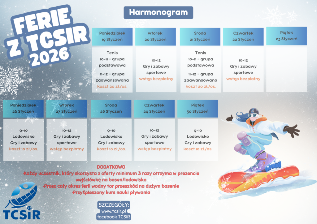 Nie siedź w domu – spędź ferie aktywnie z TCSiR!