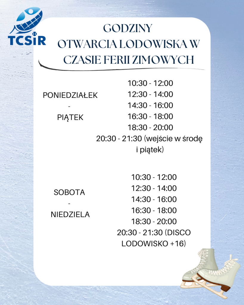 Grafik wejść na basen oraz lodowisko w czasie ferii zimowych